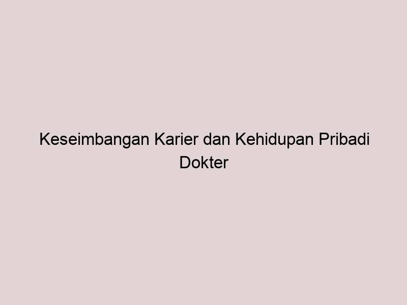 Keseimbangan Karier dan Kehidupan Pribadi Dokter