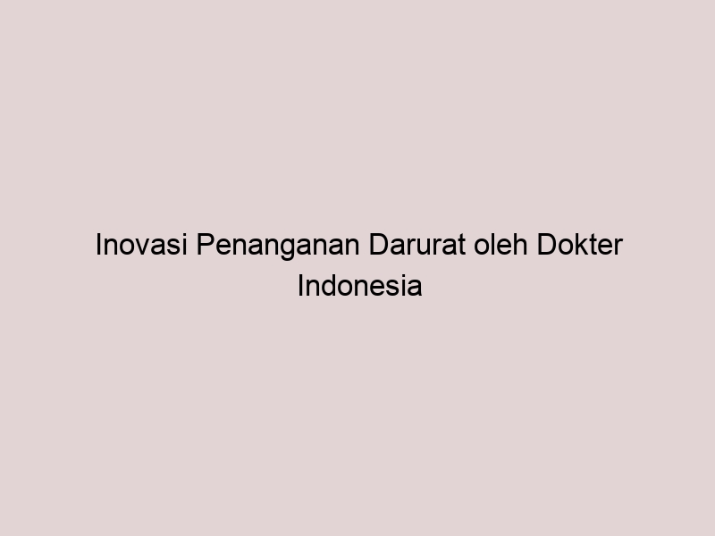 Inovasi Penanganan Darurat oleh Dokter Indonesia